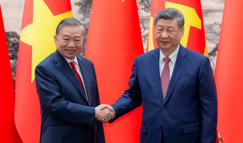 習近平再次祝賀蘇林當選越南國家主席。習近平指出,你當選越南國家主席後第一時間到訪中國,體現了你對發展中越關係的高度重視。相信在以蘇林同志為首的越共中央堅強領導下,越南必將堅定走好社會主義道路,朝著建黨建國「兩個一百年」奮鬥目標砥礪奮進。無論國際形勢如何變化,中方始終將越南作為周邊外交優先方向,願同越方秉持初心、賡續友誼,團結協作、相互支持,繼續按照「六個更」總體目標,高質量推進全面戰略合作,加快構建更高水平具有戰略意義的中越命運共同體,為推動構建人類命運共同體作出更大貢獻。