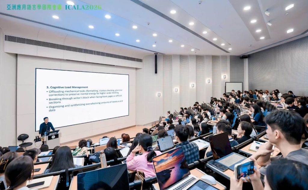同日上午,大會舉行了兩場專題研討會。城大人文社會科學學院副院長黃國文教授在探討中提出,應以多元網絡視角重新概念化應用語言學;澳門大學李德鳳教授則分享了大語言模型輔助學術寫作的規範,強調驗證、透明與數據安全在人工智能時代學術研究中的核心地位。