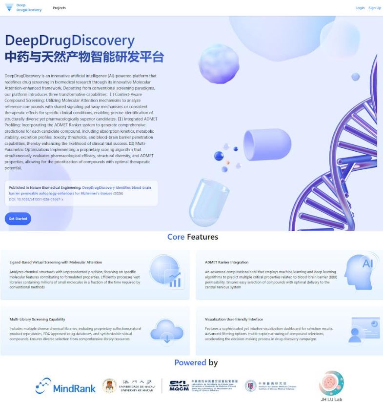 該人工智能平台已公開發佈(https://deepdrugdiscovery.mindrank.ai/),助力中藥的作用機制解析、加速創新藥物研發,為中藥的現代化與國際化提供技術支撐與平台工具。