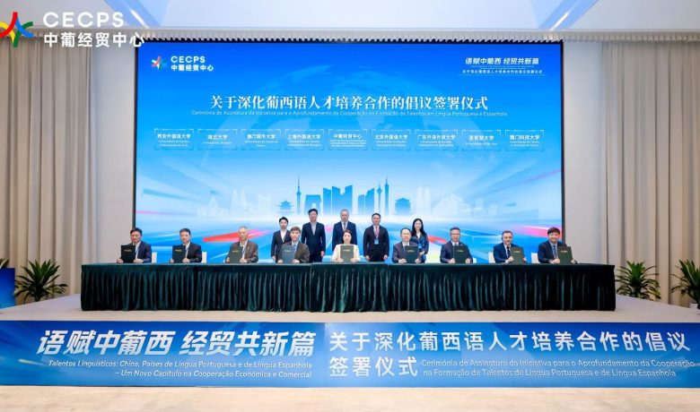 參與高校的簽署代表分別是北京外國語大學校長賈文鍵、上海外國語大學校長孟鍾捷、廣東外語外貿大學副校長謝偉光、西安外國語大學歐洲學院院長張世勝、湖北大學黨委副書記侯勇,澳科大國際學院院長張洪明、澳門城市大學副校長周萬雷及聖若瑟大學副校長João Alexandre Lobo Marques。橫琴粵澳深度合作區執行委員會副主任曹晉鋒、深合區經濟發展局局長吳創偉、民生局局長馮方丹、法律事務局副局長吳燕翔、澳門教育及青年局副局長丁少雄見證簽署儀式。