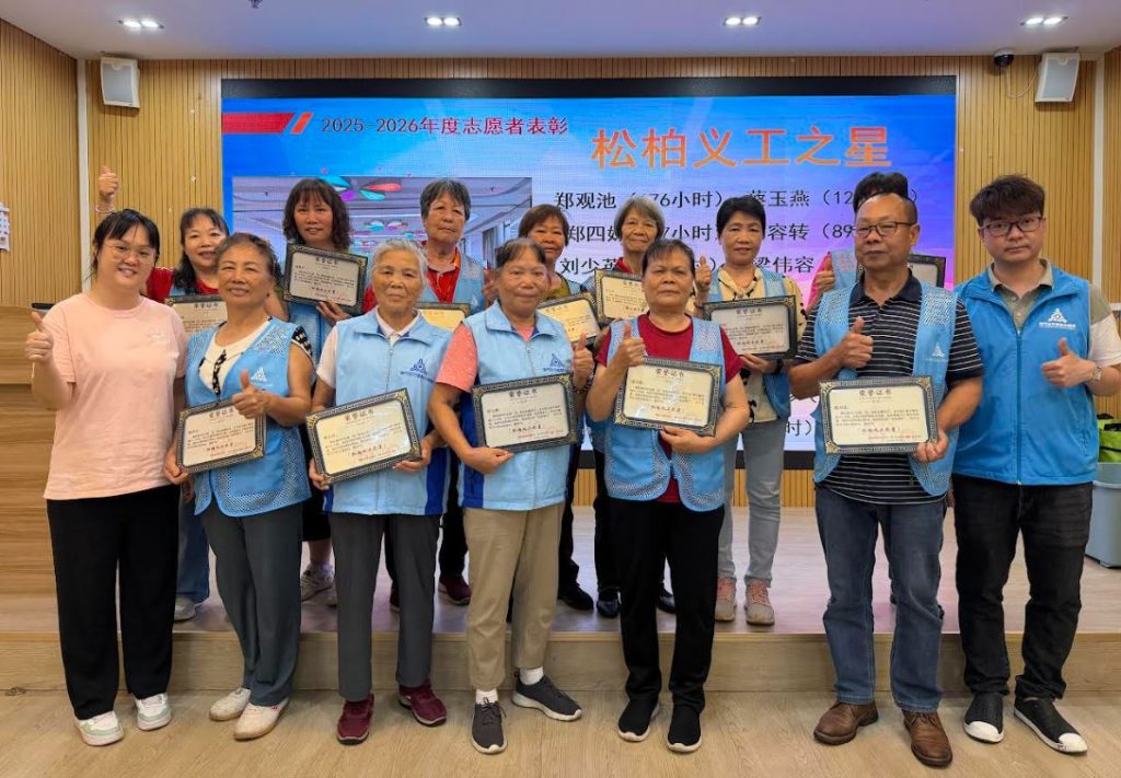 大會高潮聚焦於「松柏義工之星」的表彰。以鄭阿姨(服務時數 176 小時)為代表的「松柏義工」群體,憑藉豐厚服務時長與深厚社區情懷斬獲殊榮。他們是琴澳融合的堅實力量,將澳門先進社會服務理念融入橫琴本土,以實際行動印證:衰老並非價值的消退,而是積澱經驗、奉獻社會的黃金階段。
